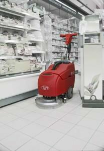 De RCM BIS 391 CB/3 is een uiterst compacte schrobmachine. Deze vloerreiniger is een uitstekende keuze voor het reinigen van vloeren in kleine oppervlaktes met veel obstakels en nauwe doorgangen. Dankzij de verstelbare stuurbeugel kan je tot diep in de hoekjes reinigen. De machine is bovendien gemakkelijk onder tafels te gebruiken en laat geen natte sporen achter. De RCM BIS 391 CB/3 is eenvoudig in gebruik en onderhoud. Je kan deze schrobmachine gemakkelijk vervoeren in de koffer van een auto, omdat het op batterijen (gel) werkt en een ingebouwde batterijlader heeft. Met deze achterloop schrobmachine heb je meer bewegingsvrijheid dan wanneer je een snoer moet gebruiken. Er zijn ook verschillende soorten borstels en pads beschikbaar voor elk type vervuiling en elk type vloer, zoals keramische, natuurstenen, gepolierde beton en gecoate vloeren.
