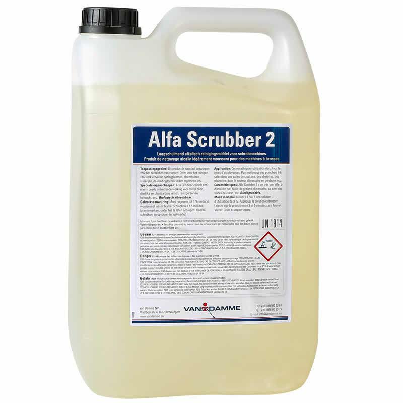 Alfa Scrubber 2 is een krachtig alkalisch en weinig schuimend reinigingsmiddel voor schrobmachines (dat weinig schuimt). Het is perfect voor het reinigen van sterk vervuilde oppervlakken zoals opslagplaatsen, slachthuizen, visserijen, en andere locaties in de voedingsindustrie. Dit product heeft een uitstekende ontvettende werking en kan oliën, dierlijke en plantaardige vetten en remsporen van heftrucks verwijderen. Alfa Scrubber 2 is biologisch afbreekbaar, wat het een duurzame keuze maakt voor bedrijven die milieuvriendelijke oplossingen zoeken. Gebruik dit reinigingsmiddel voor een grondige reiniging van vloeren met behulp van een schrobmachine. Let op: lees voor gebruik de instructies en veiligheidsvoorschriften op de verpakking.