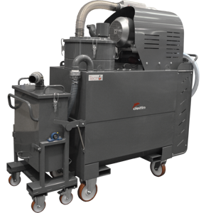 De Delfin Tecnoil 600 is een industriële vloeistof-, olie- en spanenzuiger voor de meest zware industriële toepassingen. Deze stofzuiger biedt de hoogste technische zekerheid en veiligheid voor zowel mens als milieu. Dankzij de onderhoudsarme en zeer stille zijkanaalventilator met een vermogen van 11 kW en werking op 3x400 V is deze stofzuiger krachtig en efficiënt in gebruik. De vacuümpomp wordt aangestuurd door een schakelkast met een start-stop systeem en noodstop. Er zijn meerdere opties mogelijk om de schakelkast verder uit te breiden. De vacuümpomp wordt beschermd door een nylon filter en vlottersysteem, wat de hoogste technische veiligheid biedt. De opvangcapaciteit voor vloeistoffen bedraagt maar liefst 610 liter. De tank is eenvoudig te bereiken en reinigen. De Delfin Tecnoil 600 is gemakkelijk te verplaatsen dankzij vier robuuste wielen, waarvan 2 zwenkwielen. Daarnaast wordt deze machine standaard geleverd met een hefsysteem zodat je deze met een heftruck kan verplaatsen. Kortom, de Delfin Tecnoil 600 is een betrouwbare en krachtige stofzuiger voor de meest veeleisende industriële omgevingen.